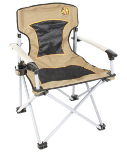 The Meerkat Solid Arm Chair is a comfortable and durable outdoor chair designed for camping, hunting, or backyard use. Made from 600D polyester with a strong 22 mm steel tube frame, it supports up to 200 kg and folds compactly for easy transport.